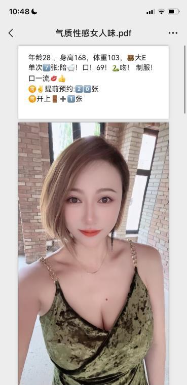 大奶子少妇。皮肤白奶子大,叫声骚。后入时候会自己顶你,让你狠狠插到底,价格较高,偶尔体验一次挺好的